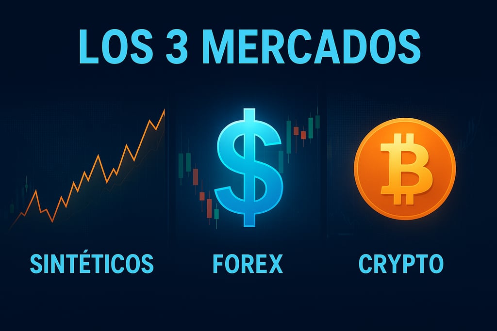 Los tres mercados —sintéticos, forex y cripto— ofrecen oportunidades únicas, pero cada uno exige un enfoque diferente: